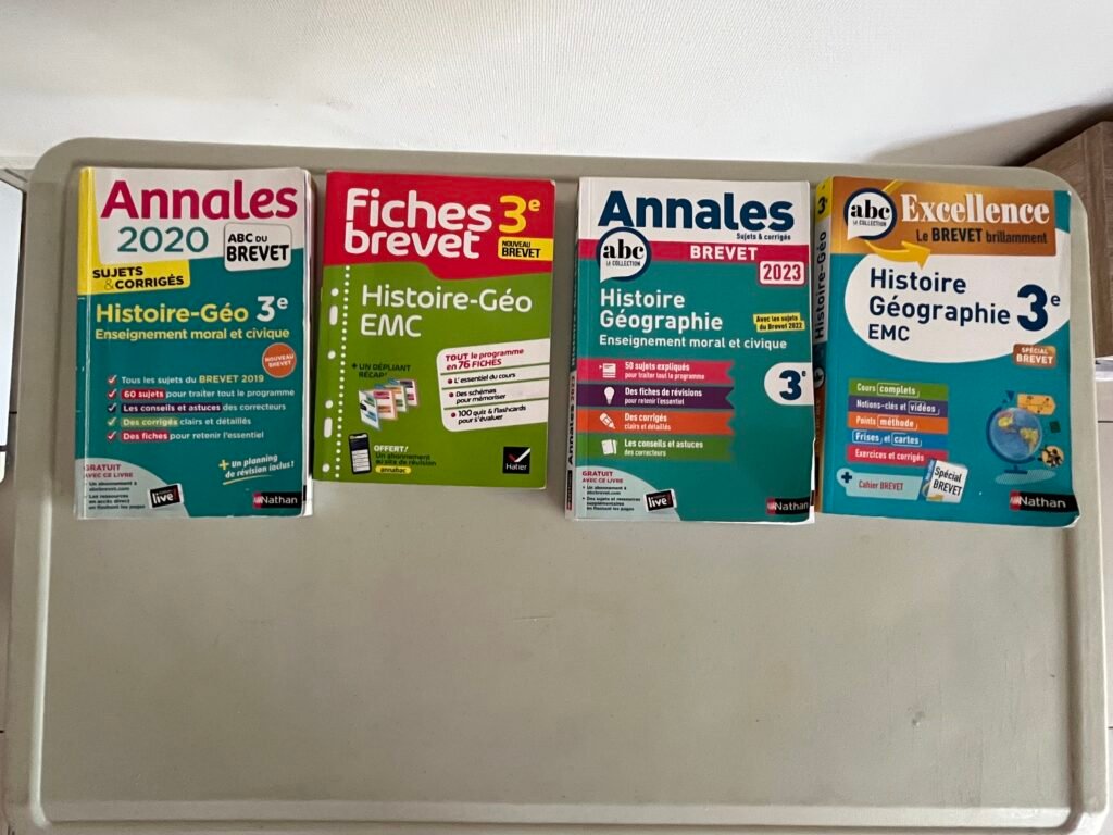 Je vends ces quatre annales histoire, géographie afin que vos enfants se préparent correctement au brevet (2€ l’annale). N’hésitez pas à me contacter pour plus d’informations.Je