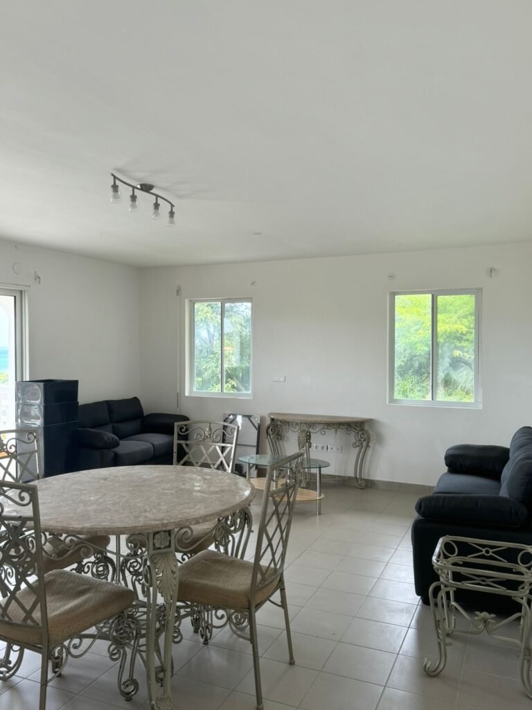 Bonjour, Il s’agit d’1 T3 de 67 m2 + loggia de 25m2 avec superbe vue panoramique sur le lagon & la mer de Grd Case et de l’île d’Anguilla. Entièrement meublé, eau, électricité & internet compris.