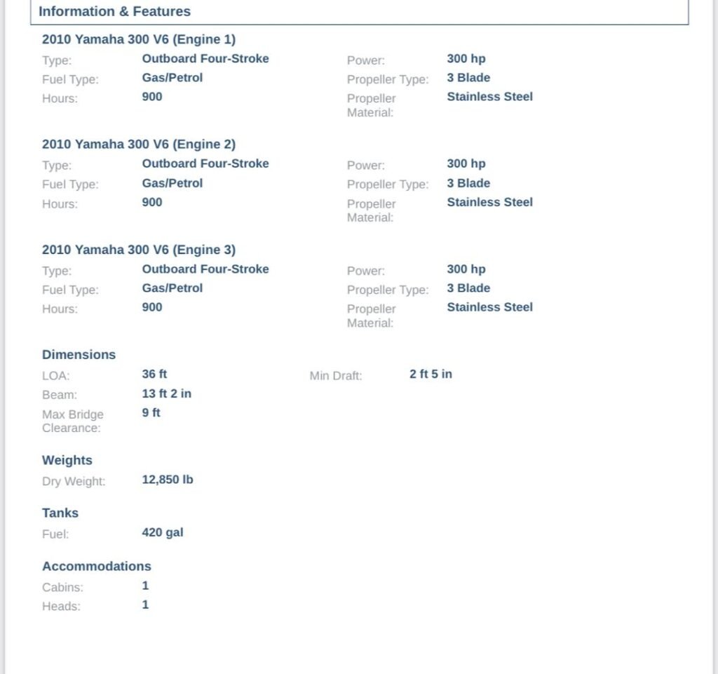Bateau Grady-White 36 pieds (2011) avec moteur Yamaha V6 300HP (2010)