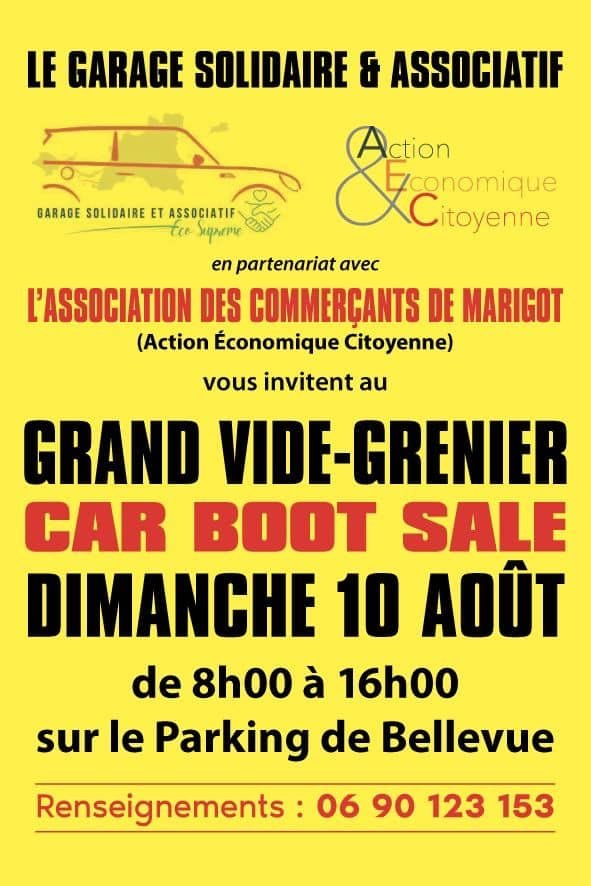 Le Garage Solidaire et Associatif et l’Association des Commerçants de Marigot organisent leur 1er vide‑grenier solidaire de l’été !