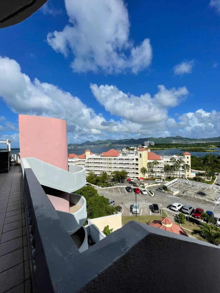 Situé au dernier étage d’un immeuble moderne avec ascenseur, cet appartement rare offre une vue à 360° imprenable sur Mullet Bay et son lagon