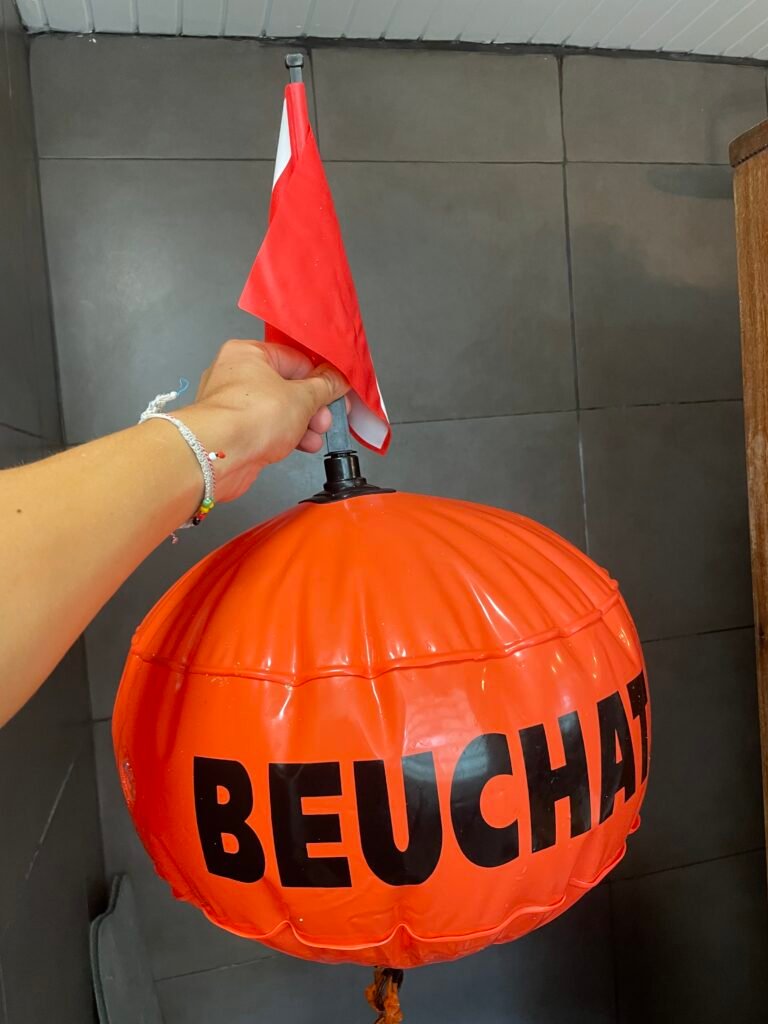 je vends ma bouée de plongée Beuchat, presque neuve, parfaite pour la sécurité en mer – homologuée gendarmerie.