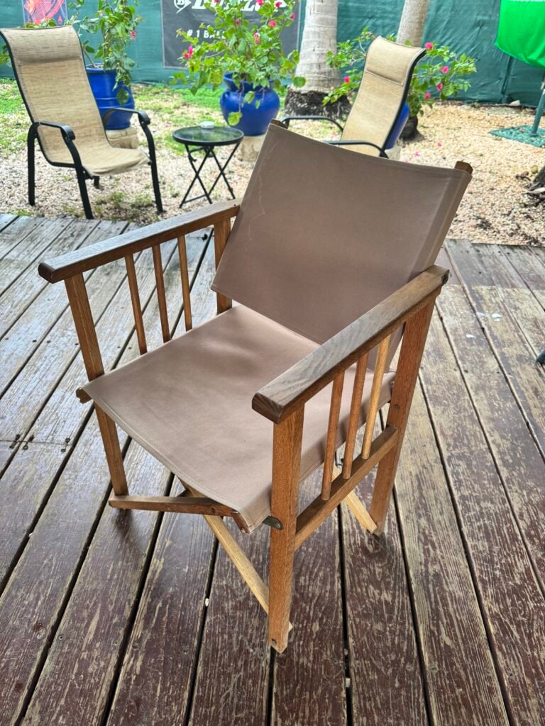 Je vends mes fauteuils type “metteur en scène” – bois de chêne – neuves.
