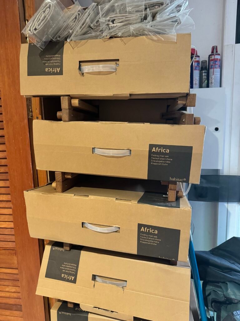La photo de la chaise est un exemple, celles que je vends sont neuves (encore dans leur emballage)